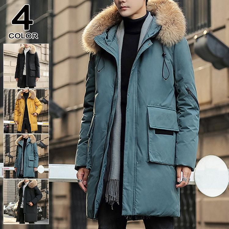 キルティングコート ダウン メンズ ダウンコート 迷彩柄 ロング丈 秋冬 暖かい 厚手 大きいサイ 新色追加して再販 ファーフード付き 防風 防寒